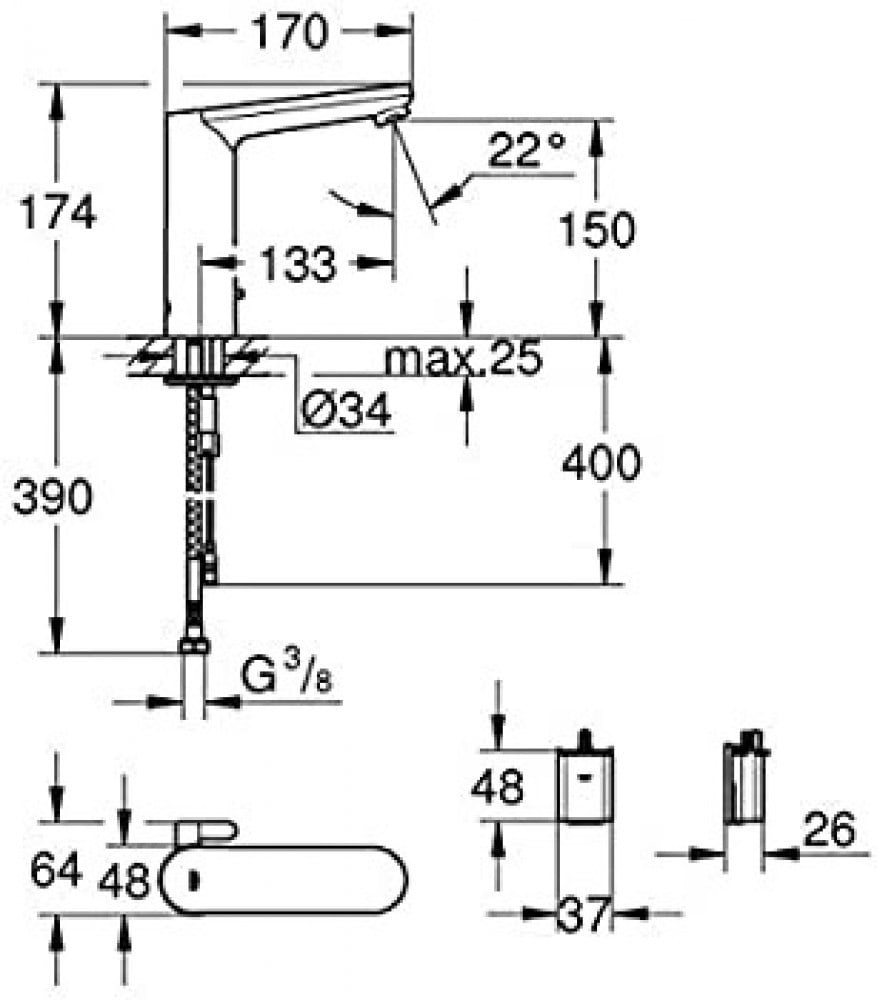 - إمكانية ضبط الحرارة من ذراع الخلاط الجانبية