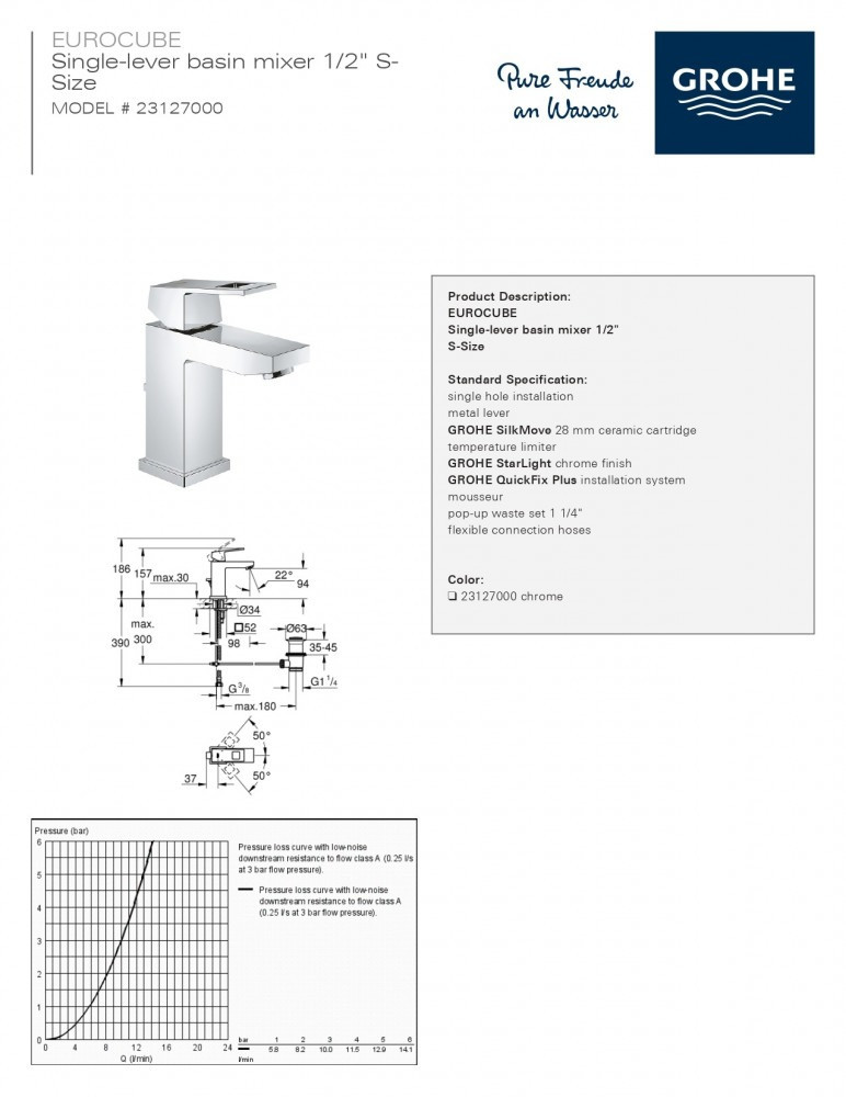 الماركة : GROHEاللون : كرومسهل التركيب و التنظيفالتثبيت : على حوض المغسلةالشكل : مربعرقم الصنف : 23127000تصميم عصري و مميز