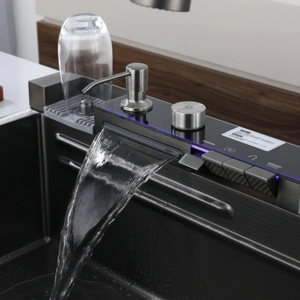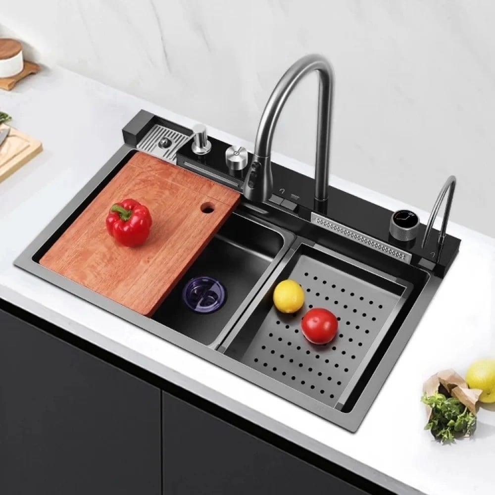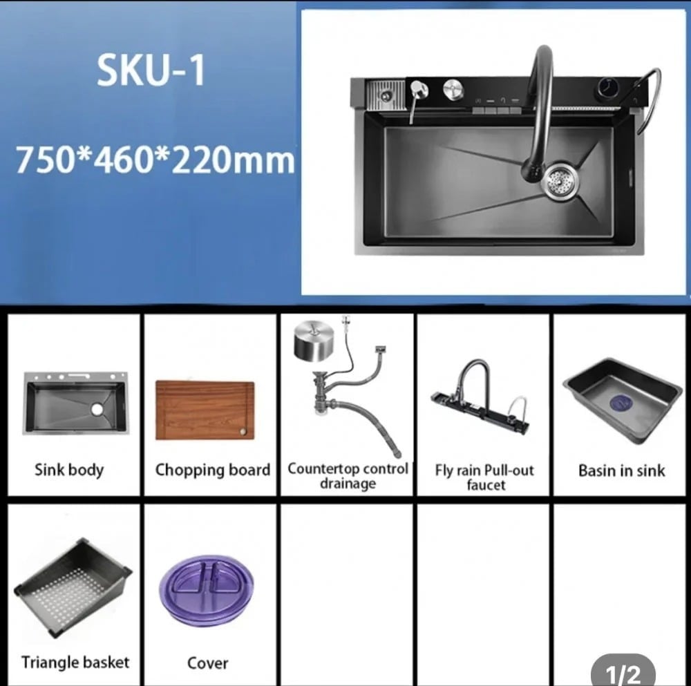 Stainless steel sink, black and gray, one year warranty, 75*46 cm